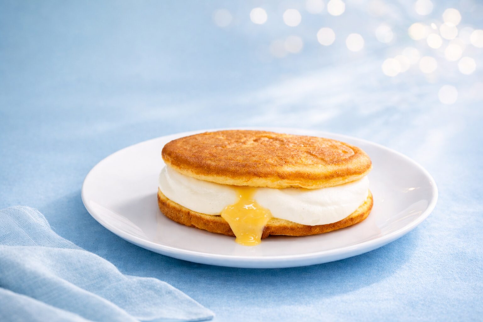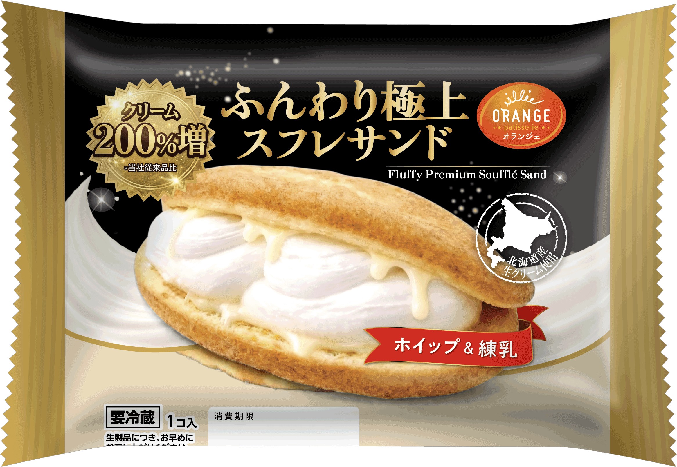 自家製カスタードと生クリームを使用したミルククリームと練乳ソースをスフレ生地で挟みました。