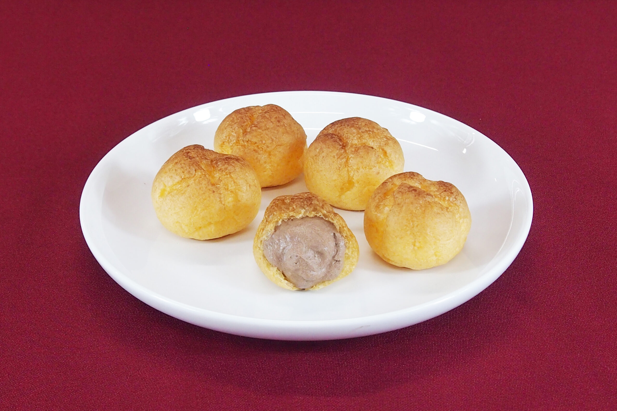 北海道産生クリームを使用したチョコクリームを、こんがりと焼き上げたプチシューパフに詰めました。