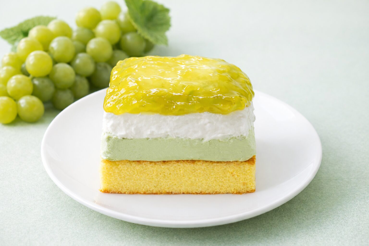 マスカットソース、ホイップクリーム、スポンジを6層に重ねました。