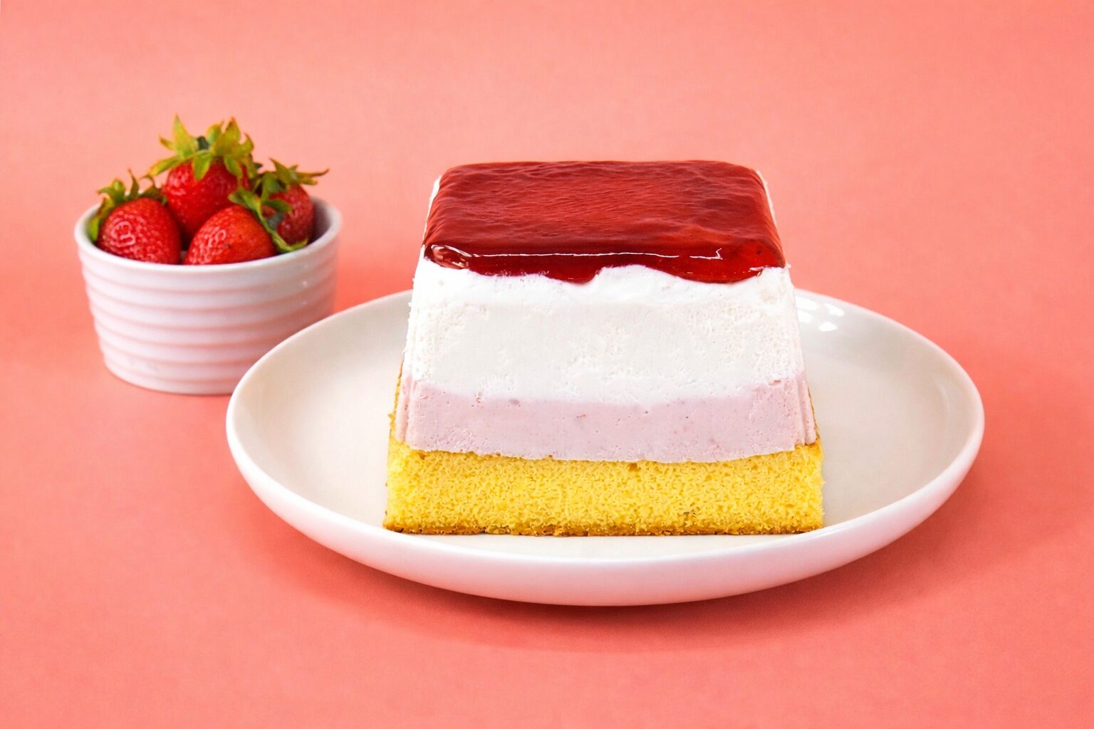 いちごソース、ホイップクリーム、スポンジを6層に重ねました。
