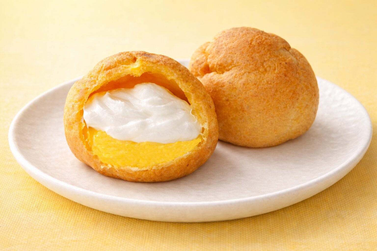自家製カスタードとミルク風味のホイップクリームが入ったシュークリームです。ふんわり香ばしく焼き上げたシューパフに、練乳が入ったホイップクリームと自家製カスタードを2層にてたっぷり詰めました。